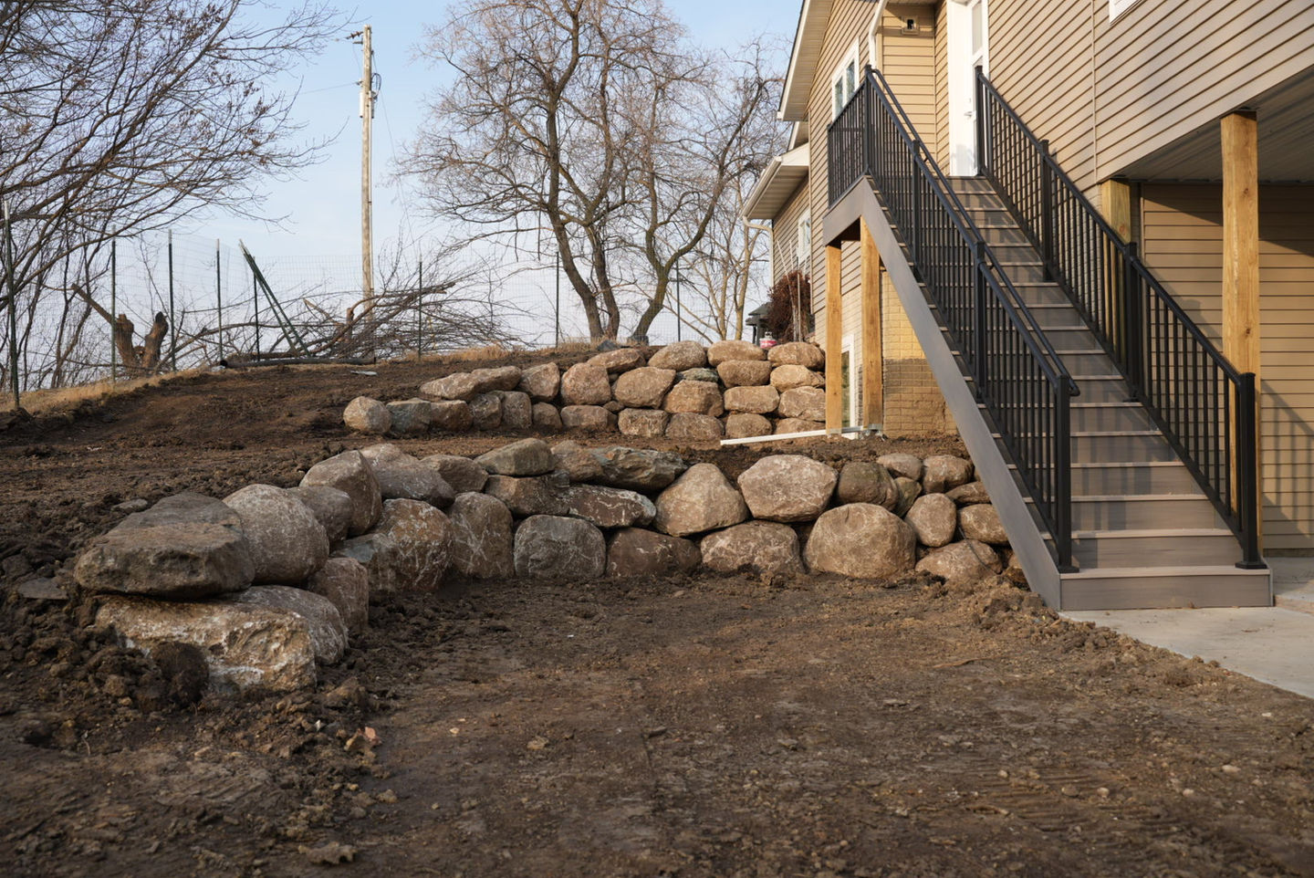 Enhanced Usability: Turn sloped areas into functional spaces with terraces, patios, and stairs.